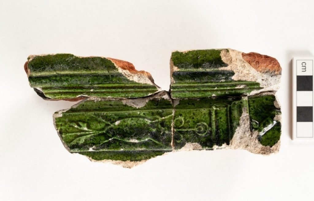 Finds recovered from the medieval and Tudor period pits demonstrated that high status buildings were present in the vicinity of the site. Glazed floor tiles may have derived from the buildings belonging to the religious compound around St. Mary’s church (now demolished), possibly discarded after a period of rebuilding. The presence of imported glazed pottery also suggested wealthy households, as did recovered fragments of stove tile.