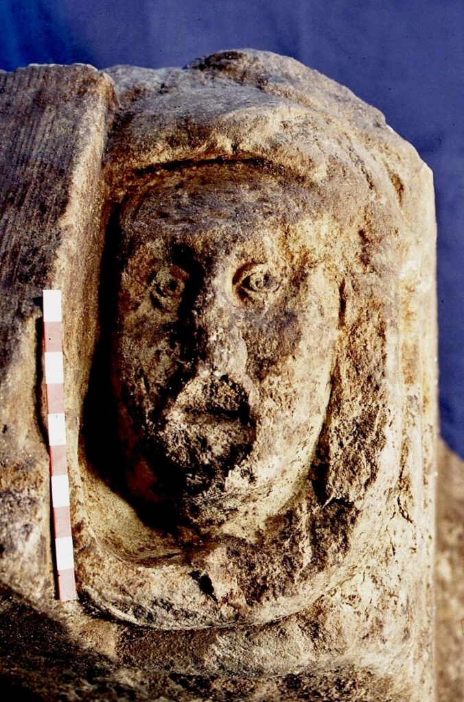 The excavations recovered fine fragments of worked stone, including a piece incorporating the image of a female face bordered by a head-dress. The decorative carving was most likely to have been displayed on an arcade, window or door arch.