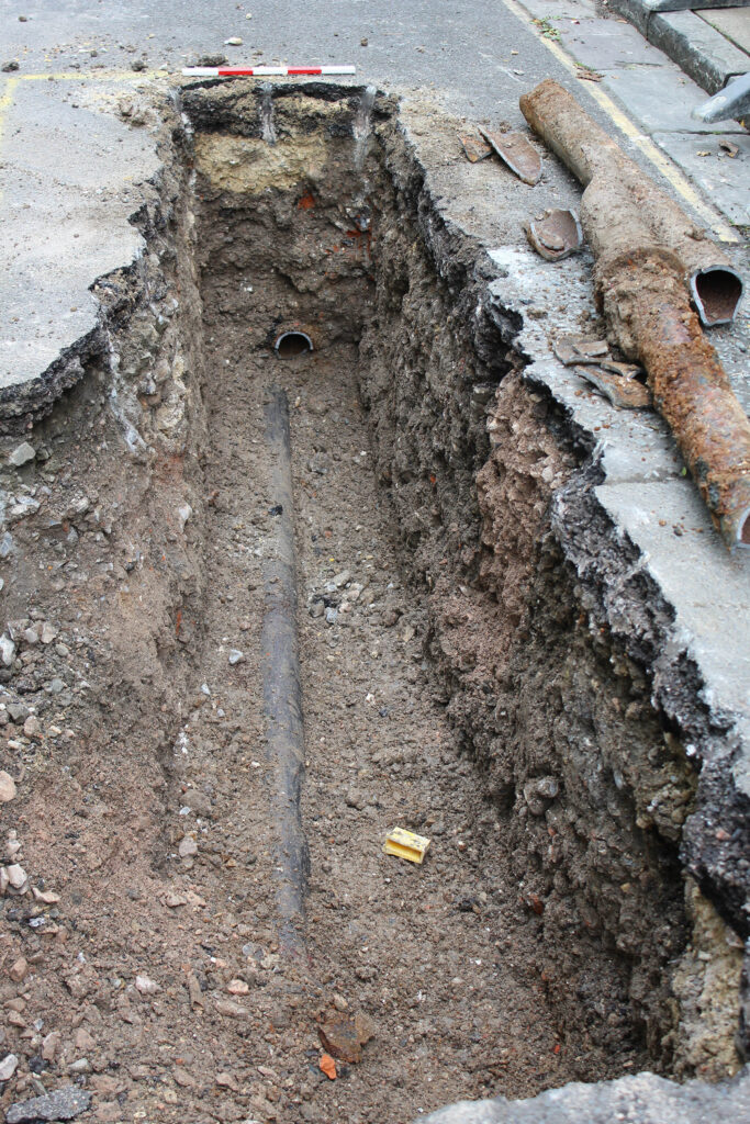PCA Winchester was commissioned to carry out a watching brief (monitoring and recording) during works to replace a gas main and restore supply connections to Colebrook Street that included the excavation of 73 trenches which formed part of the gas main replacement groundworks.