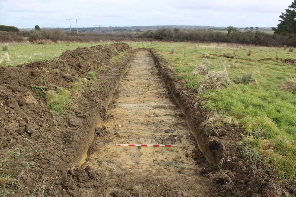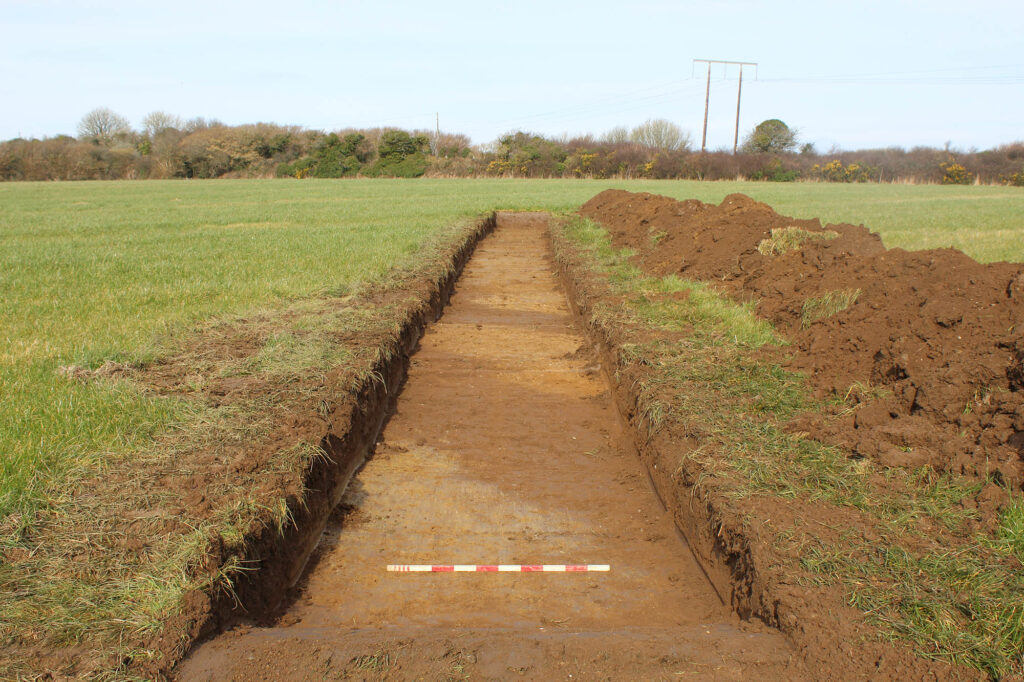 The works were situated in the environs of a predominantly agricultural landscape with possible geophysical evidence of industrial elements. Former field boundaries were also pronounced on the geophysical survey. Historical mapping indicated the presence of a single mine shaft in the area. The archaeological potential for settlement activity was therefore low, however the boundaries remained undated and so were of archaeological interest. The validity of the geophysical results would also be tested through these more extensive archaeological investigations.