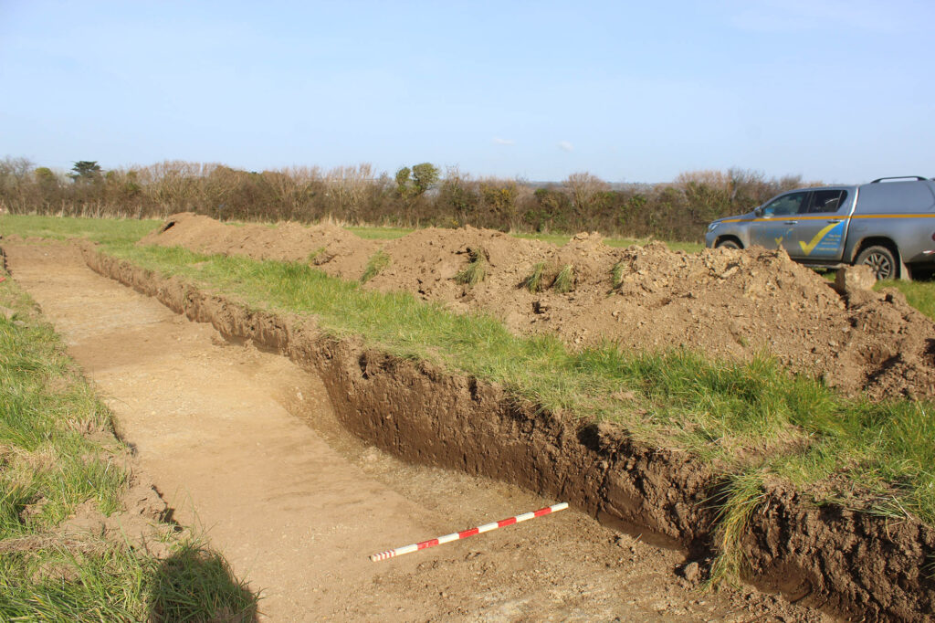 Ahead of the submission of a planning application comprising a solar farm development PCA Winchester undertook two phases of archaeological evaluation or ‘trial trenching’. Initially forty-nine 30m trenches, and one 50m trench, were excavated and identified archaeological remains relating to Bronze Age and Iron Age. Phase 2 of these evaluation comprised seventeen 30m trenches and was designed to investigate certain areas more extensively from the original investigation. Geophysical anomalies from an early survey were also targeted.