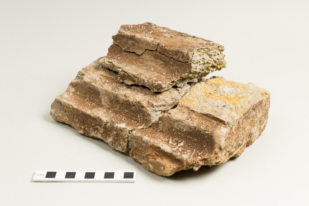 Artefacts recovered included many fragments of painted wall plaster and box flue tiles as well as mosaic tesserae and personal items. Of particular importance was a fragment of a carved cornice of Purbeck marble, painted red on three sides, recovered from one of the earliest deposits recorded within the investigation. This was only the second example of this rock to have been found in London with surviving paint on it and it can be attributed to the 1st century AD. All the finds recovered indicated that an important Roman building may have once lay on the site or close by and it was postulated that they may be evidence for a bath house.