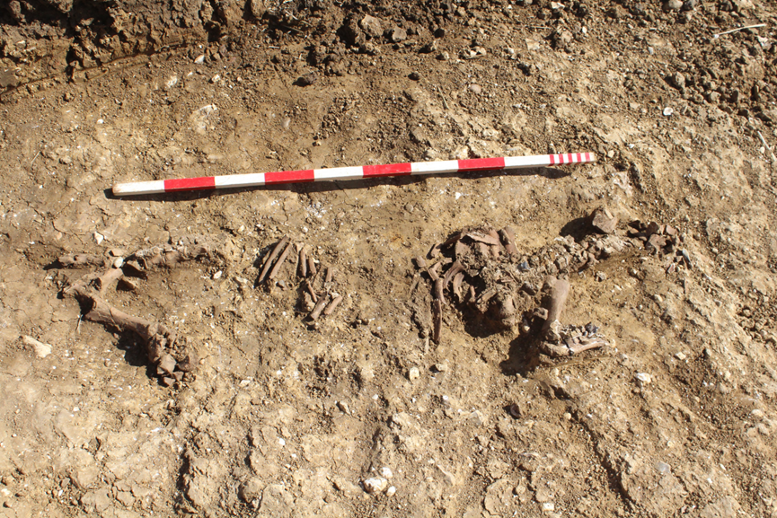 From the excavations, 20 out of the 39 trenches contained archaeological features or deposits. These mainly comprised ditches forming settlement boundaries and enclosures; a Late Bronze Age to Early Iron Age field system, the possible periphery of an Iron Age settlement, and a 13th to 14th century farmstead were all identified. Post-Medieval dated land divisions were visible across the area; one ditch was excavated by mechanical excavator and was cleaned and characterised by hand and the results indicated minor changes in agricultural use across the area over time. Pottery and lithic scatters assisted in dating a series of prehistoric ditches and pits, and suggested a similar early date for a large firepit which was located in their vicinity; this firepit was remained excavated during this phase of works with the agreement of Suffolk County Council’s Archaeological Service (SCCAS), as future mitigation in which a more complete analysis of the feature and its surrounding context can be undertaken.