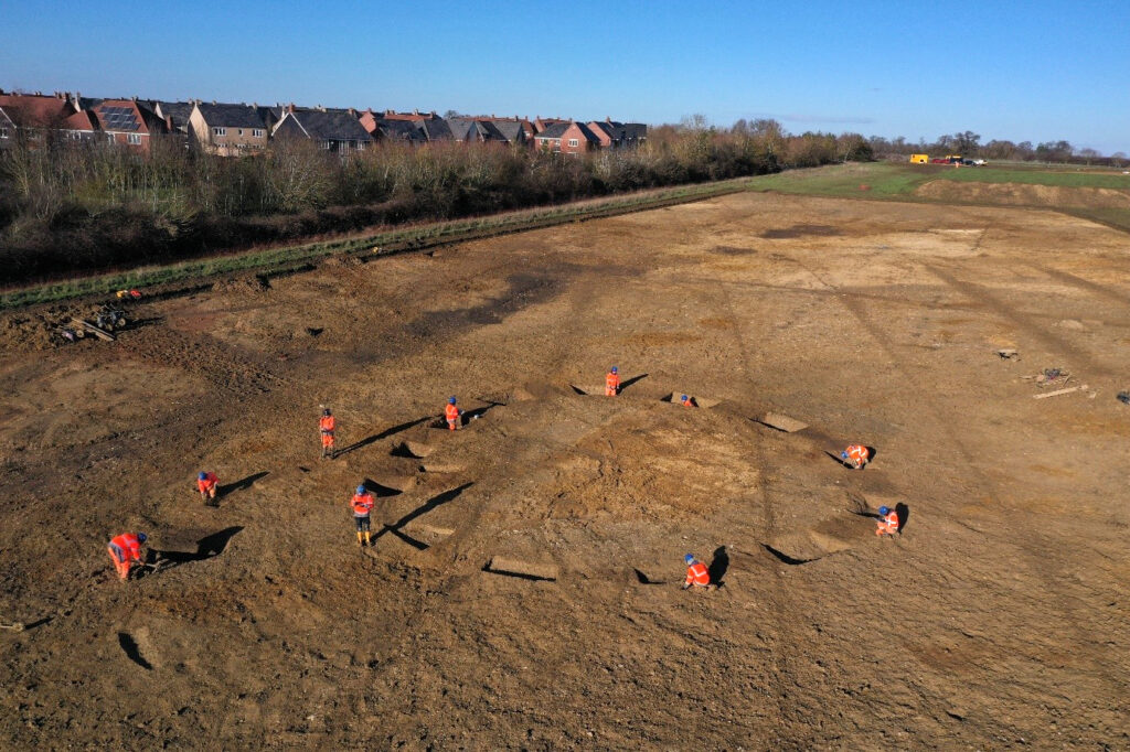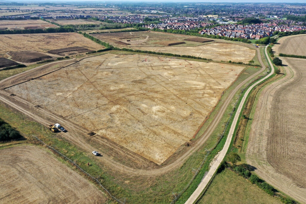 PCA Cambridge conducted an archaeological excavation comprising six excavation areas and five trenches and measured 18.9ha in size. The site was located to the east of the historic town centre of St Neots and investigations were conducted to enable the development of 1,020 residential dwellings and up to 7.6 ha of mixed uses, including a nursery, public house, hotel, primary school, and related infrastructure. These works followed extensive research into the site, comprising Air Photo Survey, Geophysical Survey, field walking and trial trenching, as well as the study of the neighbouring site (Love Farm West) located immediately to the east of Monksfield.