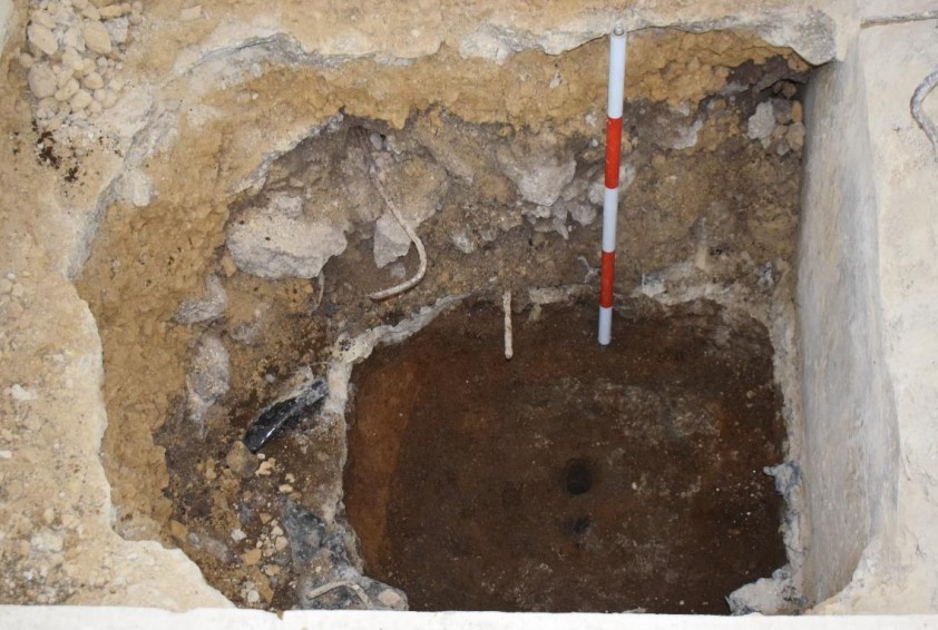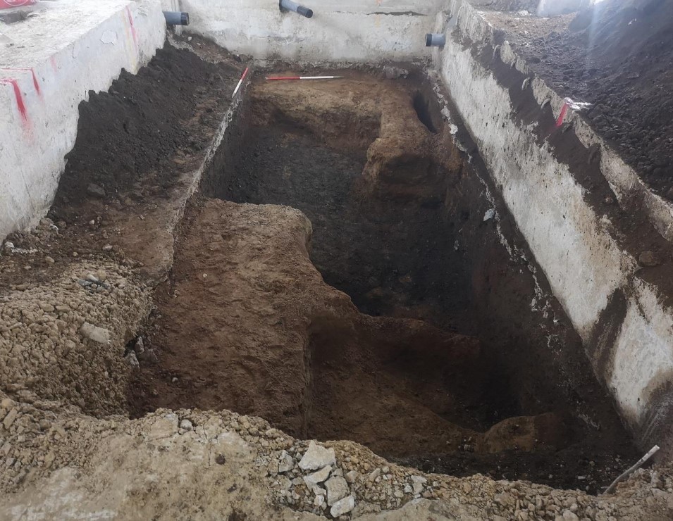 The previous year PCA Warwick had undertaken monitoring and recording of a geotechnical pit immediately adjacent to the new work and despite there being a 1.35m concrete slab and make up an undated pit was exposed beneath. This was hand augured revealing it to be 0.48m deep. Given the nature and depth of the feature, this was considered likely to represent part of a pit of Saxon date, although no dating evidence was recovered.