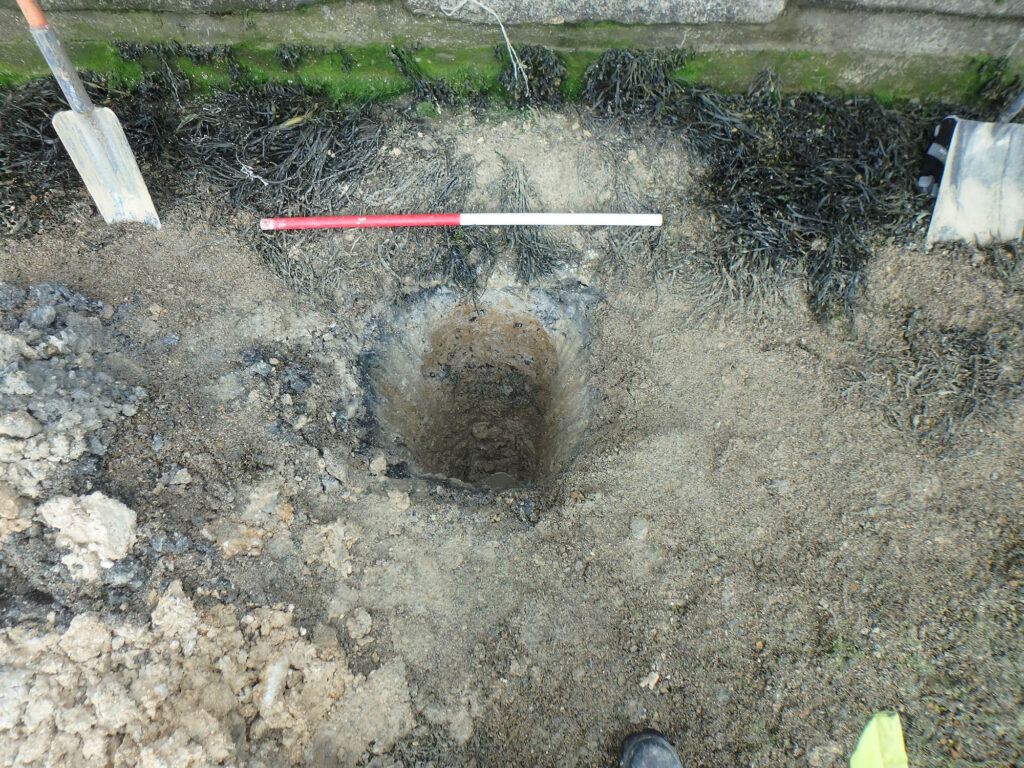The archaeological works, a watching brief (monitoring and recording), comprised a total of 8 boreholes and 13 trial pits across a wide area surrounding the castle. This included the frontage and foreshore along the eastern shores of Portchester and the southern shore of Paulsgrove. These investigations revealed a distinctive natural deposition sequence through stratigraphic records made at the site but no significant archaeological remains were encountered and the project continued efficiently.