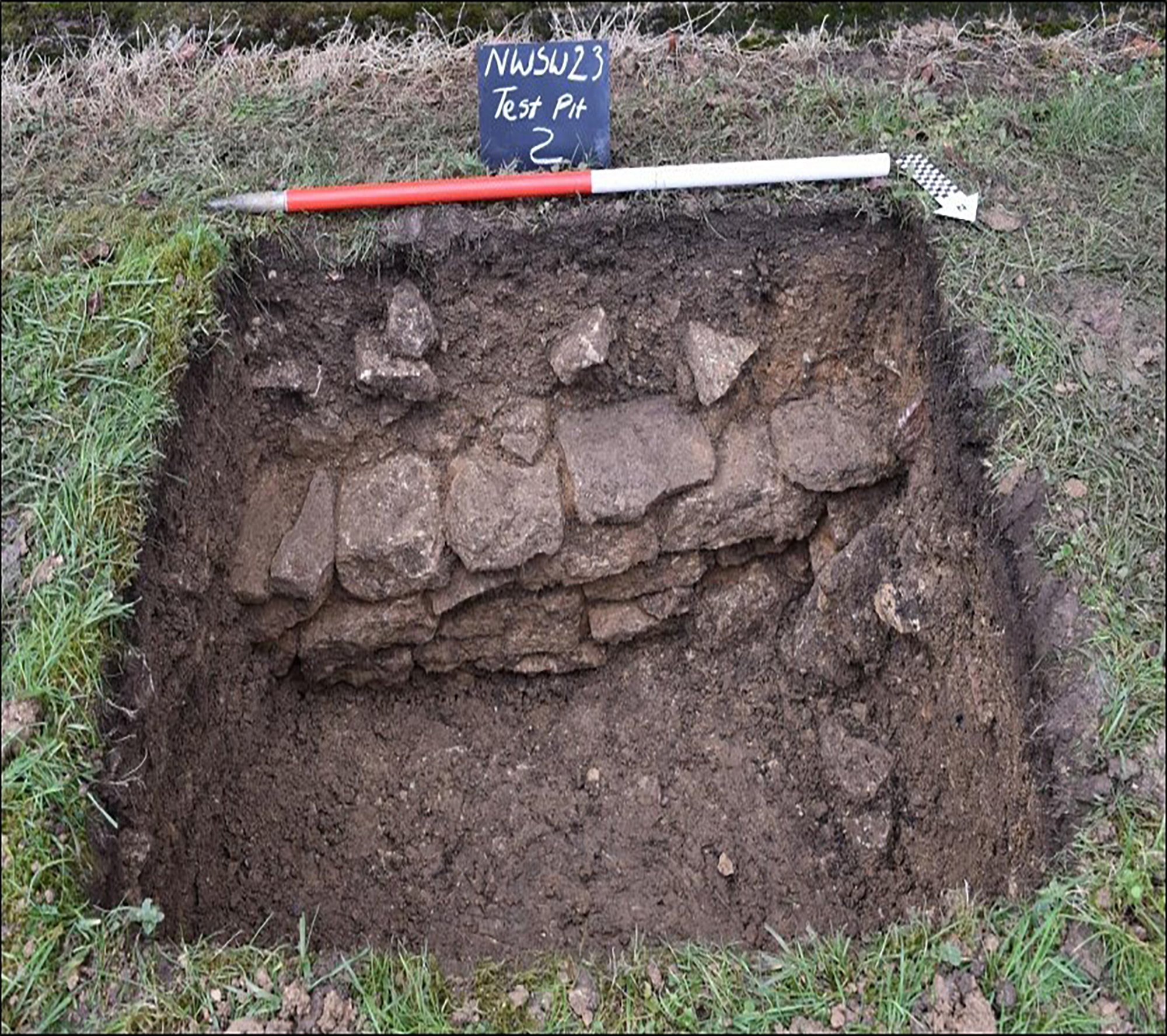 A Written Scheme of Investigation was prepared and approved by the Local Planning Authority prior to the commencement of fieldwork which comprised three hand excavated test pits, each measuring 1m x 1m located in the area north of the chancel. The principal aims were to determine the presence and extent of the north wall of the original Norman chancel, as well as whether any burials remained in-situ within the proposed area of development. All three test pits yielded positive results, with twpo of these revealing medieval foundations and one exposing the lower half of an in-situ east-west oriented inhumation. Across all three test pits, the archaeological remains were overlain by a backfill deposit of 20th century date, likely to derive from archaeological excavations known to have taken place in this area of the churchyard in the 1960’s, and suggesting that the remains had previously been exposed, and possibly disturbed, at this time. A report has been produced and submitted to the Parochial Council to inform future work associated with this project.