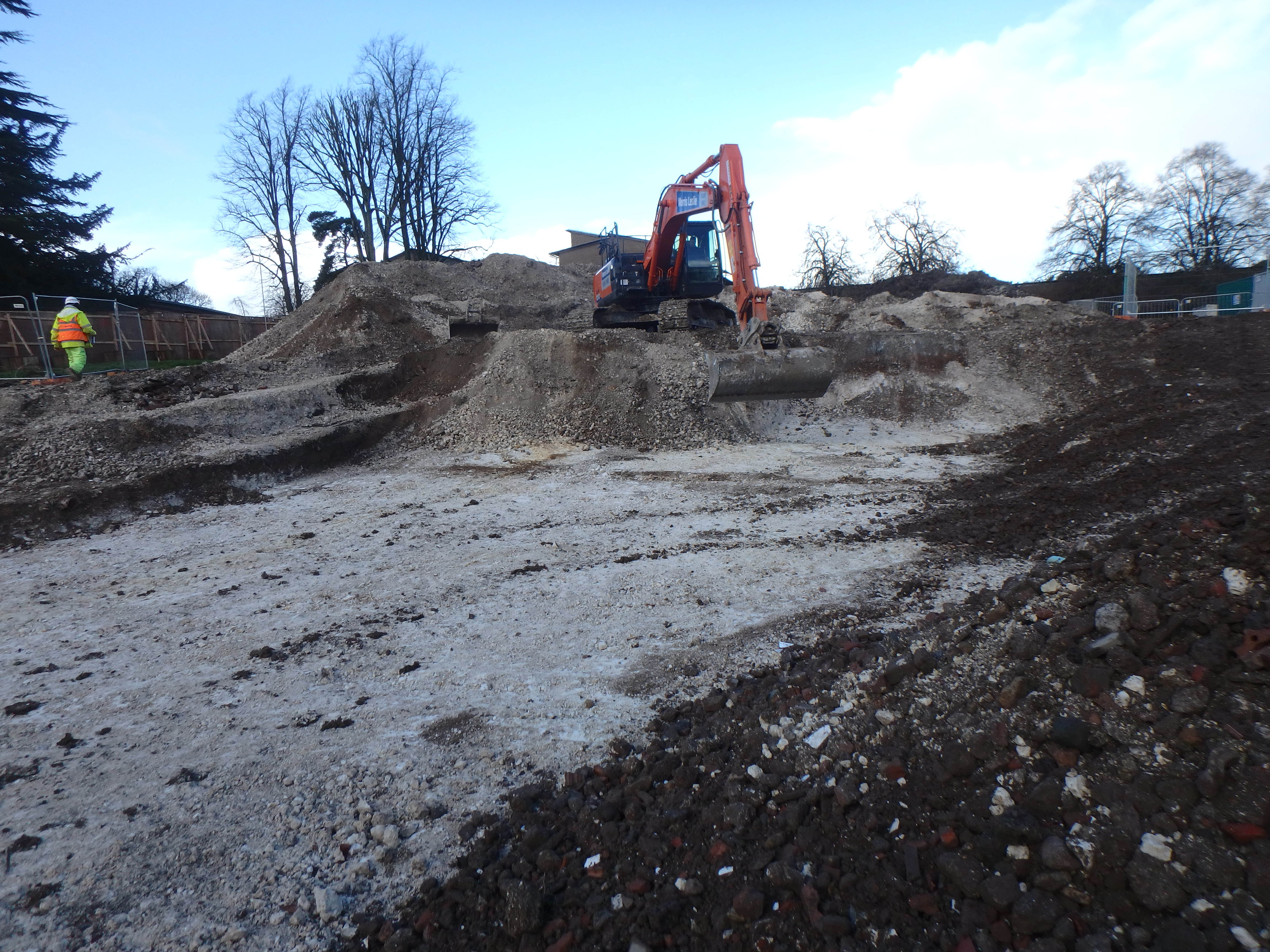The result of the watching brief was that no significant archaeology was identified during this programme of works. The site appeared to have been landscaped during the late post-medieval period. The presence of 19th-century material lying directly on top of natural deposits indicates that any post-medieval landscaping of the site was extensive, removing any earlier deposits. This suggests that any in situ archaeological features or deposits were destroyed at this time. A report was produced to satisfy planning conditions.