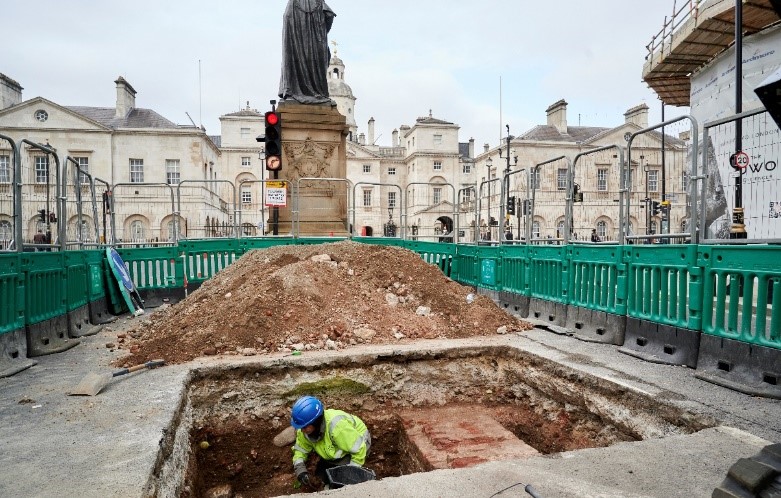 Pre-Construct Archaeology London was involved from the project design and initiation stage of the Westminster Ceremonial Streetscape Project (WCSP), of which archaeological investigations were a component part. This wide-ranging scheme saw the installation of a pedestrian and traffic management system, intended to improve security at street level across the core of the City of Westminster, In 2017 PCA London was commissioned by WSP / Parsons Brinckerhoff to prepare a scheme-wide desk-based impact assessment and then undertake archaeological monitoring during test-pit surveys over wide project area, comprising 19 locations, mostly all of which were within Tier 1 or Tier 2 Archaeological Priority Areas. This project followed on from the earlier Whitehall Streetscape Project on which PCA also undertook fieldwork for between 2007 -2010.